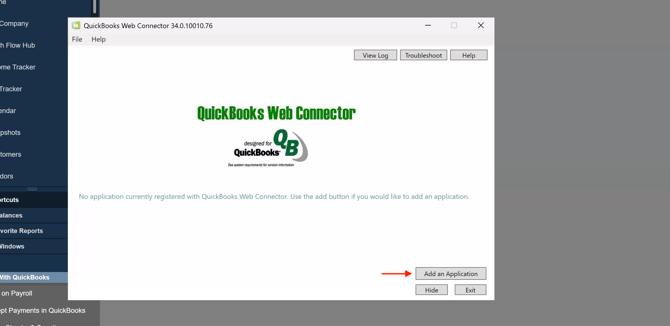 Click Add an Application in the bottom-right of the Web Connector window.